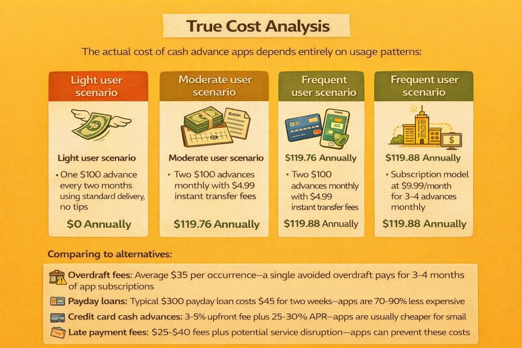 The actual cost of cash advance apps depends entirely on usage patterns: